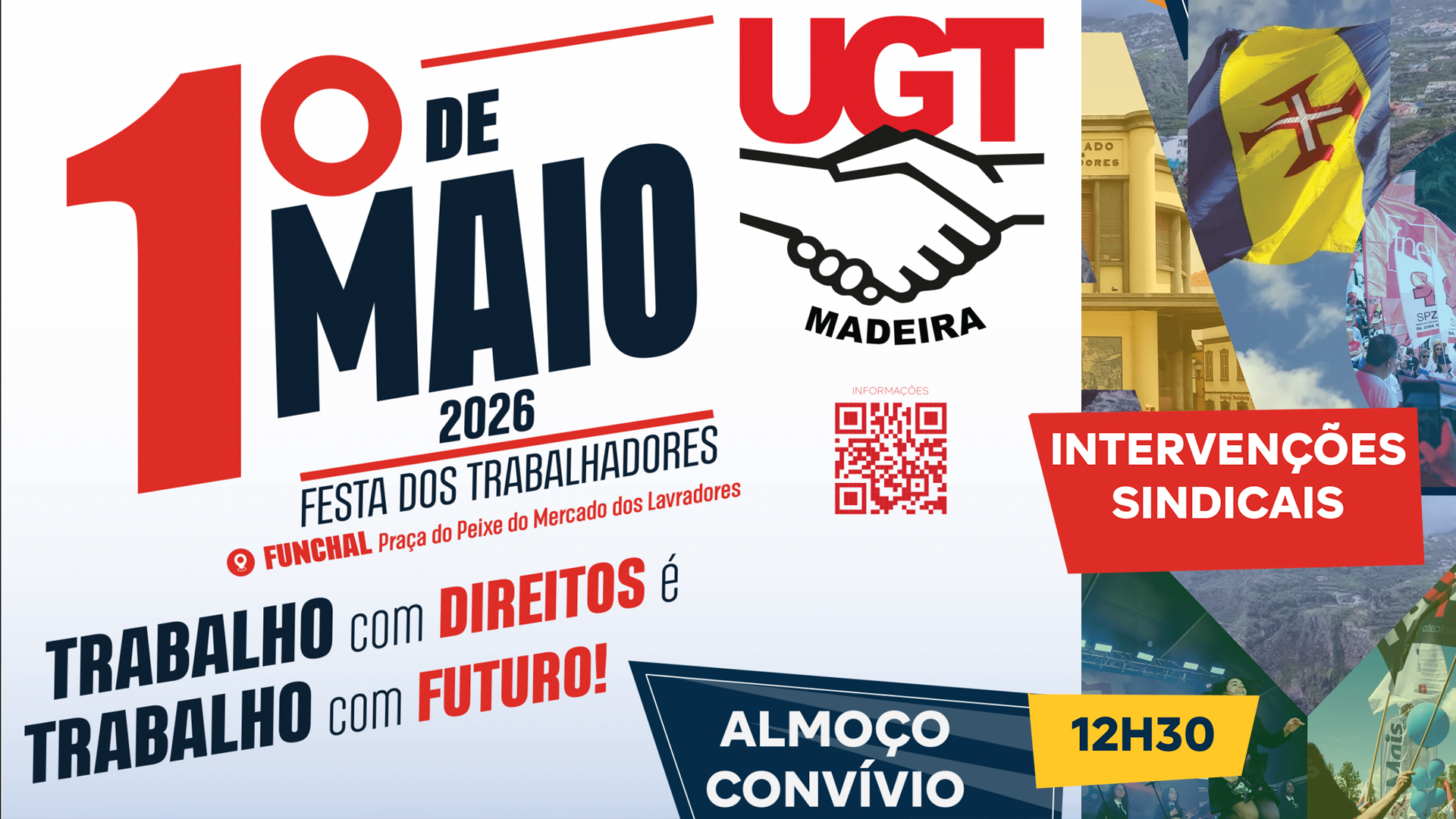 As comemorações do 1º de maio de 2026, organizadas pela UGT MADEIRA ocorrem na Praça do Peixe do Mercado dos Lavradores, no...